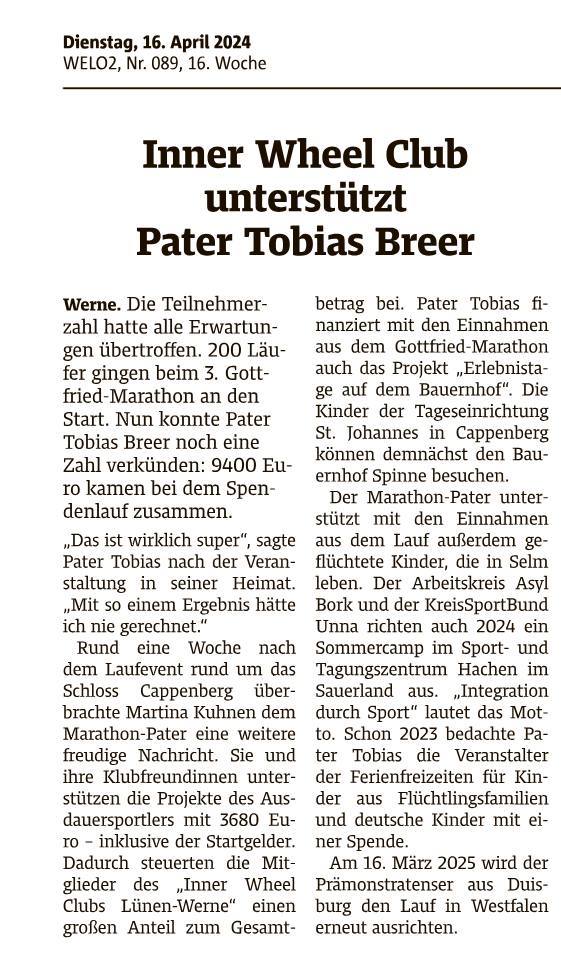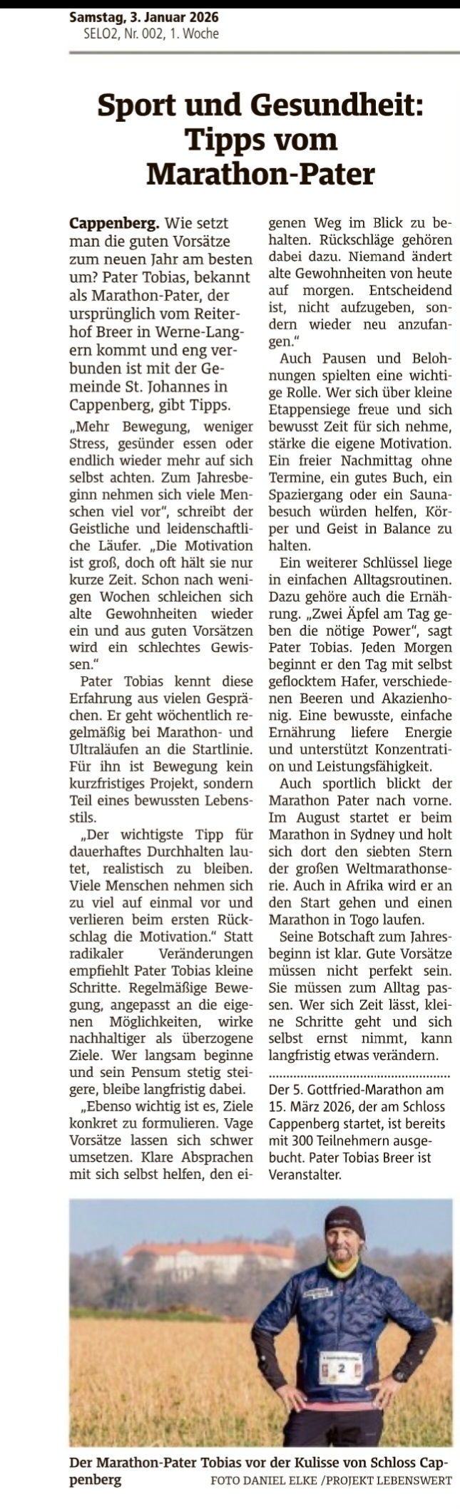 Pater schwärmt vom Marathon - WAZ/NRZ - 06.01.2025