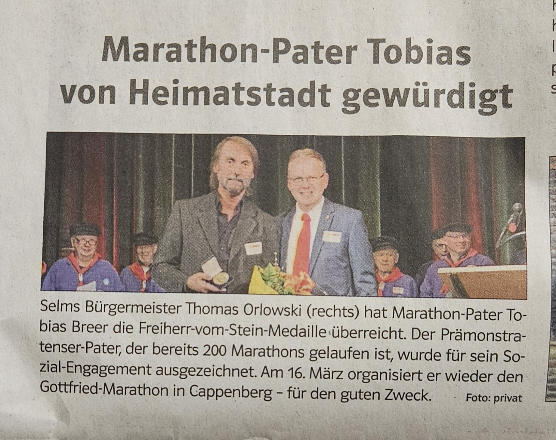 Marathon-Pater Tobias von Heimatstadt gewürdigt - Kirche+Leben - 08.02.2025